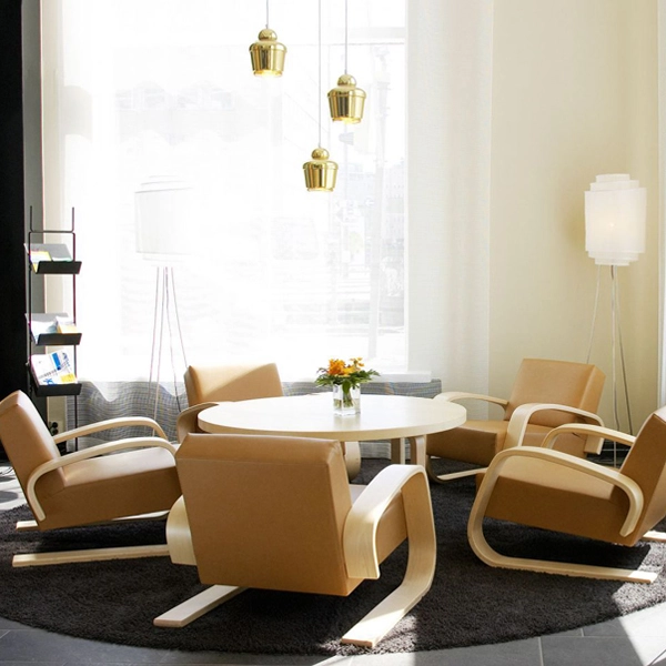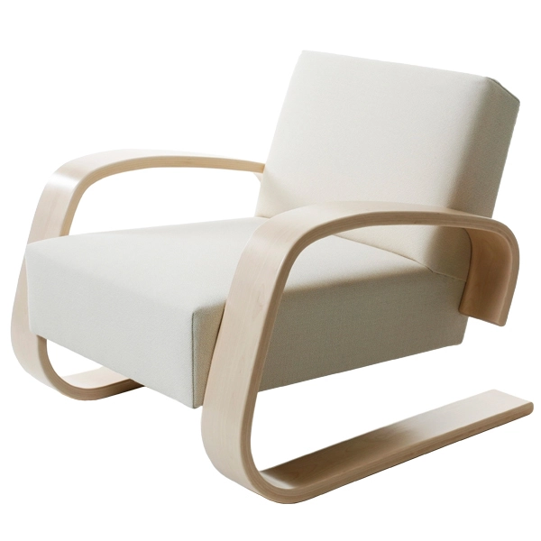 La poltrona 400, creata da Alvar Aalto e meglio nota con il nome di Carro armato, è una delle pietre miliari nel design dei mobili del 1900. Alvar Aalto creò il Carro armato nel 1936 per la Triennale di Milano. Questa poltrona massiccia attirò molta attenzione e fu anche premiata durante la fiera. La sedia Carro armato costituiva qualcosa di diverso rispetto ai precedenti mobile di Alvar Aalto, sia per l’aspetto che per i suoi presupposti. Precedentemente Aalto aveva disegnato i suoi mobili per un determinato edificio, mentra il Carro armato era un lavoro su commissione per la Triennale. La seduta resistente e gli ampi braccioli oltre a rendere la poltrona estremamente comoda sono gli elementi che conferiscono alla poltrona il suo aspetto caratteristico – che ricorda appunto un carro armato. La leggerezza vista nelle prime sedie di Alvar Aalto aveva ora lasciato spazio ad un aspetto più massiccio e il baricentro si era abbassato. Il Carro armato può essere rivestito con numerosi tipi di tessuti. Tra questi i tessuti di Fanny Aronsen, che portano nuove tonalità a questo classico senza tempo.