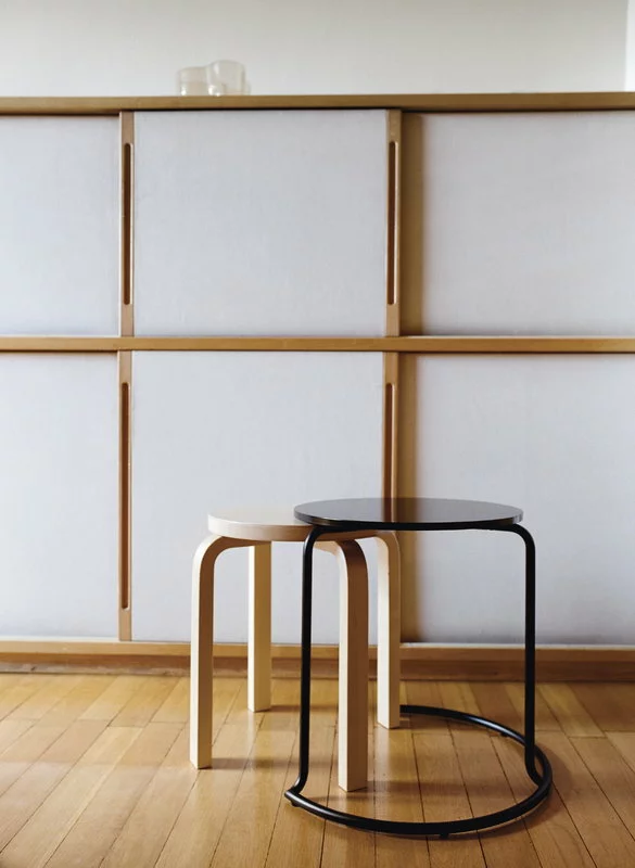 Lo sgabello E60 di Artek disegnato da Alvar Aalto è una delle icone del design finlandese dei mobili. Lo sgabello Aalto a quattro gambe è un prodotto bello e senza tempo. Lo sgabello di Aalto fu presentato per la prima volta nel 1933 e fece sensazione nel mondo del design dell’epoca. Lo sgabello con la gamba a L fu rivoluzionario per la sua realizzazione tecnica e rappresentò una positiva spinta per il design scandinavo moderno. Per curvare la gamba dello sgabello di Aalto, ancora oggi la stessa tecnica viene usata: all’estremità di un pezzo unico in betulla massello vengono fatti dei tagli in direzione delle fibre, formando una sorta di ventaglio. Sottili lamelle di impiallacciato di betulla vengono inserite e incollate all’interno dei tagli. Questa struttura rende possibile curvare il legno, con il calore o con il vapore, dell’angolo desiderato e, una volta asciutta, la gamba sarà molto resistente e potrà essere unita alla seduta. Gli sgabelli sono impilabili e sono ottimi anche come tavolinetto, ad esempio accanto ad una poltrona o in camera da letto. Lo sgabello di Alvar Aalto è ancora oggi un prodotto bello e geniale, e sempre moderno grazie alla sua forma semplice.