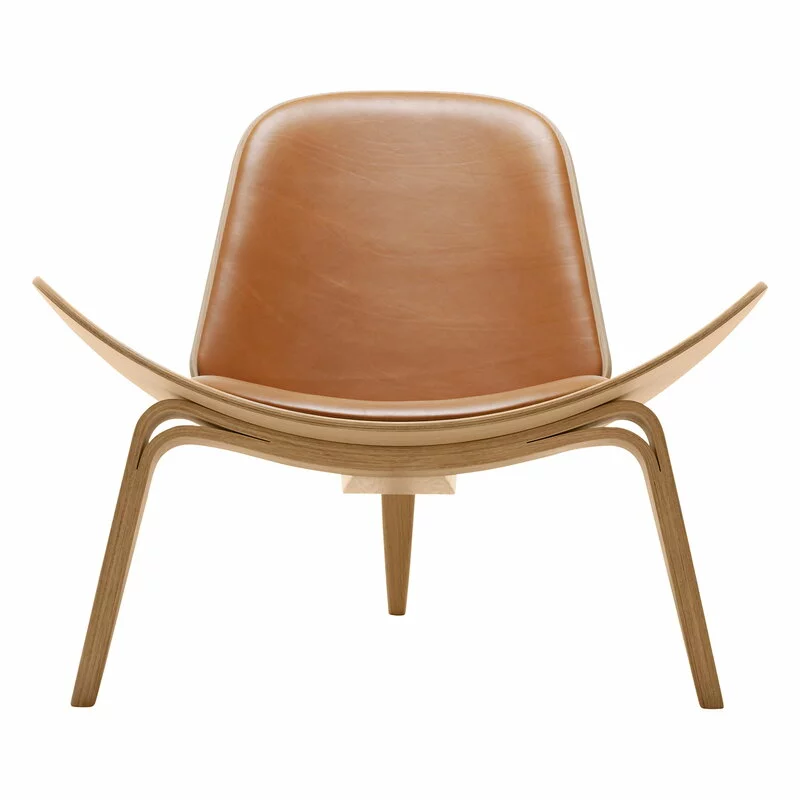 La silhouette sofisticata e ariosa della poltrona CH07 Shell è formata da un’elegante struttura in legno massello e da una seduta ricurva a forma di ala e uno schienale rivestiti in pelle. Wegner credeva che una sedia dovesse essere sempre comoda e bella da guardare da tutti i lati e da tutte le angolazioni. Realizzata a mano in Danimarca, la poltrona Shell è un perfetto esempio di ciò.
