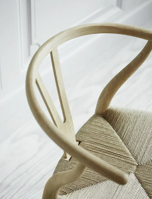 Il processo di fabbricazione della sedia Wishbone prevede più di 100 passaggi, la maggior parte dei quali ancora realizzati a mano. La sola seduta intrecciata a mano richiede a un artigiano esperto circa un’ora e 120 metri di corda di carta. La sedia Wishbone, caratterizzata da accurate rifiniture, è un capolavoro dell’artigianato tradizionale e del design danese.