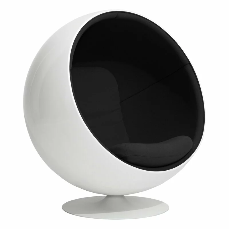 La sedia Ball Chair è stata progettata da Eero Aarnio nel 1963 ed è stata presentata al Salone Internazionale del Mobile di Colonia nel 1966. Per la sua realizzazione Eero Aarnio ha utilizzato uno dei suoi materiali preferiti, la fibra di vetro o vetroresina, un materiale robusto e duttile. L’interno è imbottito e rivestito in tessuto. La Ball Chair di Eero Aarnio è stata spesso definita come una “stanza nella stanza”. Infatti al suo interno è come stare in un ambiente separato in cui potersi rifugiare per avere la propria calma e relax.