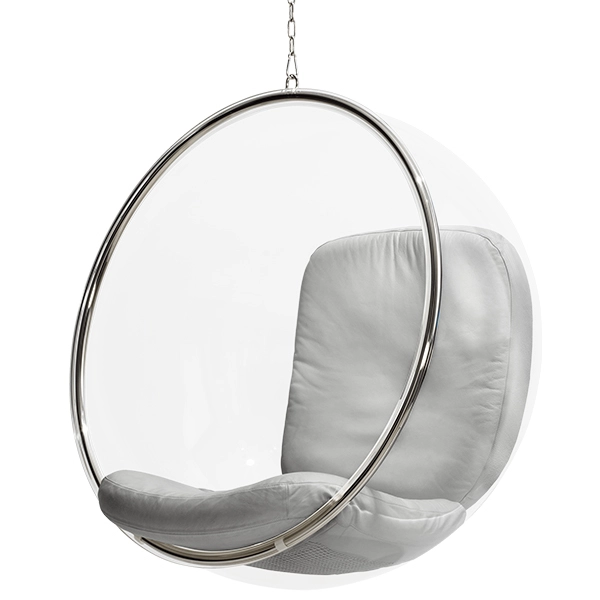 Basata sull’idea della sedia Ball Chair, la sedia Bubble Chair di Eero Aarnio è una versione semplificata dello stesso design. Creata da Eero Aarnio nel 1968, la Bubble Chair non ha un piedistallo ma è appesa al soffitto. Così Eero Aarnio commenta il suo design: ”Dopo aver realizzato la sedia Ball Chair, desideravo avere in essa la luce e così mi è venuta l’idea di una struttura trasparente in cui la luce viene da tutte le direzioni. L’unico materiale adatto è l’acrilico che viene scaldato e soffiato fino ad assumere la forma finale, proprio come una bolla di sapone”. Grazie alla speciale acustica e alla morbida seduta in pelle, sarà come essere piacevolmente isolati dal resto, anche in un luogo affollato. Come la Ball Chair, anche la Bubble Chair è diventata una seduta molto nota e desiderata in tutto il mondo.