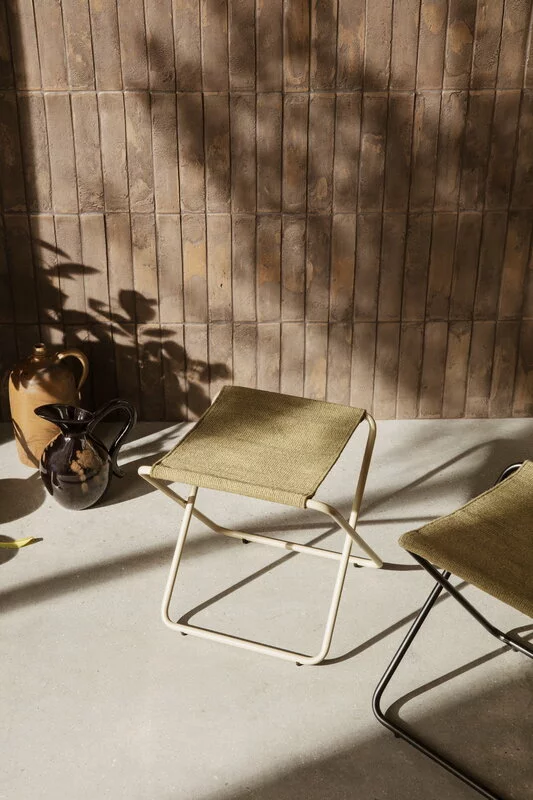 Lo sgabello Desert di ferm LIVING è una versione moderna della classica seduta portatile da giardino. Lo sgabello Desert è caratterizzato da una struttura di metallo e da una seduta in tessuto ed è facile da piegare e portare con sé, ad esempio ad un picnic. Essendo pieghevole, è anche facile da riporre e occuperà poco spazio.
