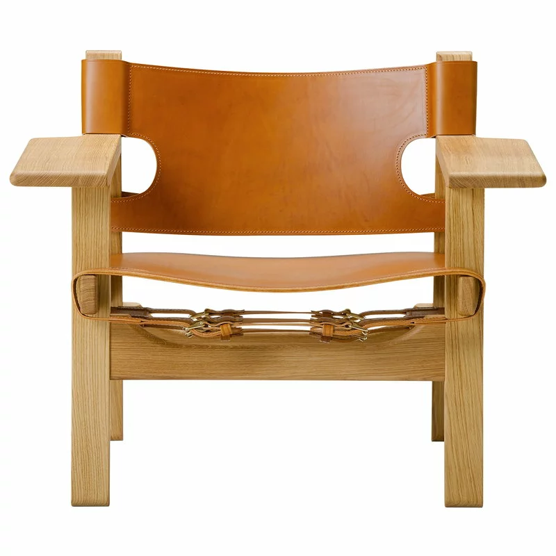 The Spanish Chair, disegnata da Børge Mogensen per Fredericia, è un’icona del design danese del 1958. The Spanish Chair è una sedia costituita da una struttura in resistente rovere con seduta e schienale in pelle e ampi braccioli che fanno anche da piccoli e pratici tavolini. Mogensen trovò l’ispirazione per i braccioli nelle sedie che vide durante un viaggio in Spagna, in aree influenzate dalla vecchia cultura islamica. Grazie agli ampi braccioli, The Spanish Chair può essere utilizzata anche senza un tavolino separato, dando l’impressione di uno spazio più ampio intorno ad essa.