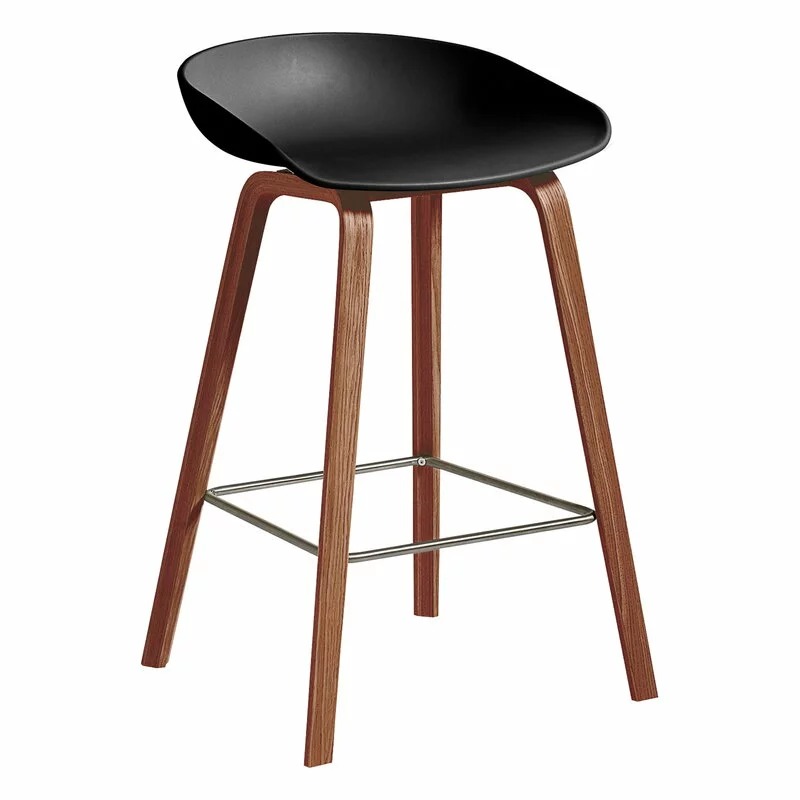 About A Stool AAS32 Eco unisce l’aspetto elegante dell’iconica collezione About A di HAY con materiali ecologici. La seduta dello sgabello è realizzata in polipropilene riciclato – un materiale di scarto proveniente, per essere precisi, dalle linee di produzione della collezione About A. La struttura in legno è realizzata in noce rifinito con una lacca ecologica a base d’acqua. E c’è di più, tutte le sedie e gli sgabelli About a Eco sono interamente riciclabili.
