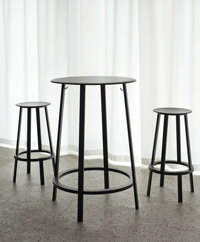 Lo sgabello da bar Revolver di HAY è costituito da due parti: una base solida e una seduta che gira di 360 gradi. La parte superiore che gira è una caratteristica molto comoda e pratica che lo rende estremamente piacevole nella vita di tutti i giorni. Lo sgabello da bar Revolver è realizzato in acciaio verniciato a polvere.