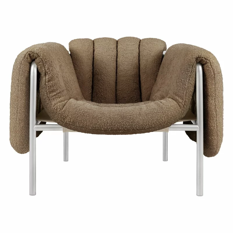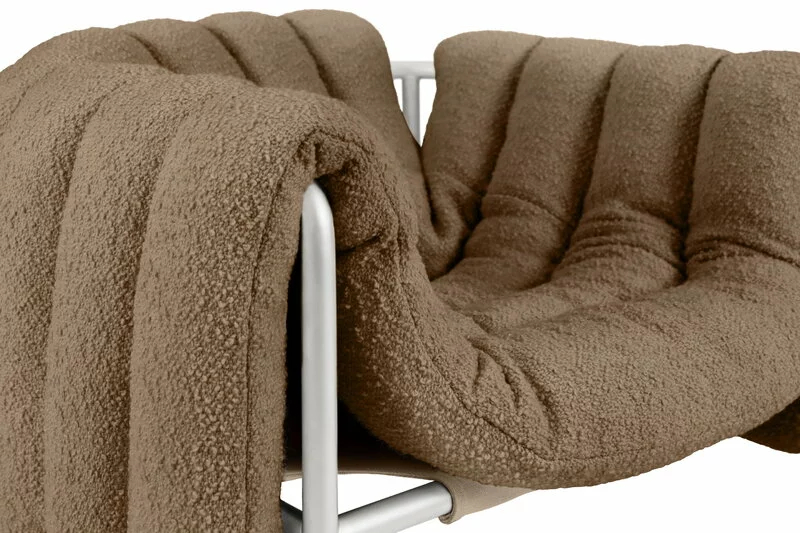 La poltrona Puffy di Hem affascina per il delizioso contrasto di forme e materiali. Disegnata da Faye Toogood, Puffy consiste in una struttura in acciaio tubolare e un’imbottitura rimovibile rivestita in bouclé che poggia liberamente sul telaio. L’aspetto giocoso della poltrona Puffy dona un tocco di relax al soggiorno e all’ingresso e il suo design arioso la rende adatta per qualsiasi tipo di arredamento, minimalista o massimalista che sia. Puffy è disponibile in diversi colori e rivestimenti.