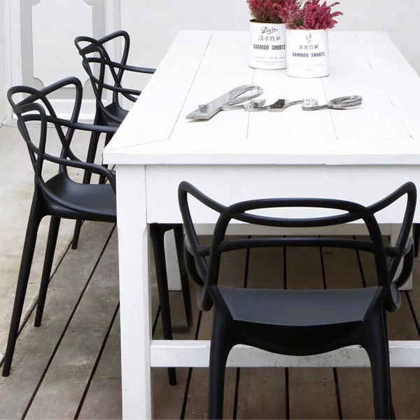 La sedia Masters di Philippe Starck e Eugeni Quitllet è un omaggio a tre iconiche sedie. Il suo schienale intrecciato ricorda lo schienale della sedia Series 7 di Arne Jacobsen, della sedia Tulip di Eero Saarinen e della sedia DSR di Ray Eames. Le gambe sottili donano alla sedia Masters un aspetto leggero. La sedia Masters è impilabile ed è adatta all’uso in ambienti esterni.