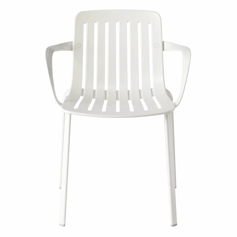 Realizzata in alluminio riciclabile, Plato presenta una struttura elegante e robusta, completa di braccioli e a prova di intemperie grazie alla vernice in poliestere. L’accogliente seduta ricurva presenta delle aperture per far passare l’acqua piovana. La sedia Plato, versatile e impilabile, è adatta per le cene al chiuso e all’aperto, ma trova spazio anche in uffici e in sale conferenze.