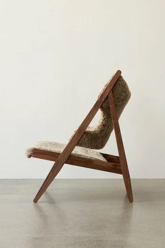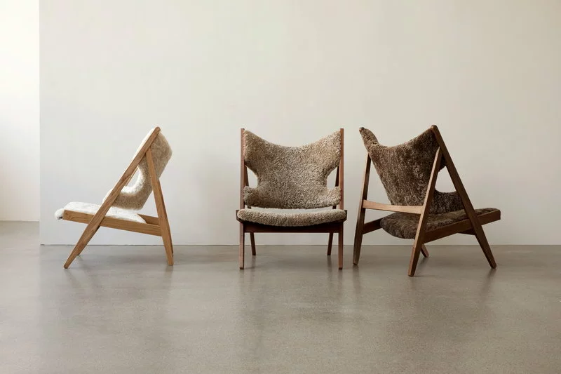 La poltrona Knitting Chair è una poltrona dal design intelligente disegnata da Ib Kofod-Larsen nel 1951. Knitting Chair unisce una struttura in legno massello e una seduta rivestita in vera pelle di pecora. Knitting Chair esprime la leggerezza del modernismo degli anni ’50. Il suo nome deriva dagli spazi aperti sullo schienale all’altezza dei gomiti che la rendono perfetta appunto per fare la maglia (”knitting”) – o per la lettura o per controllare il telefono. Menu ha rilanciato la poltrona Knitting Chair nella collezione Modernism Reimagined.