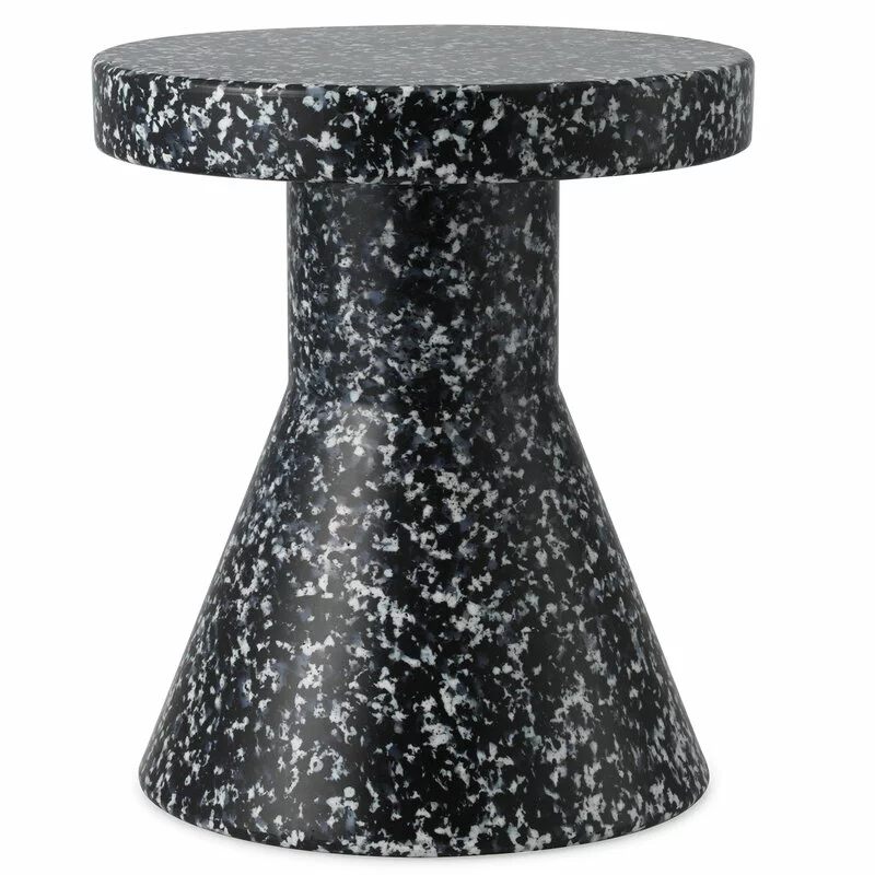 Lo sgabello Bit di Normann Copenaghen è un mobile multiuso deliziosamente originale che funge da sedia, tavolino e supporto per fiori e piante. Disegnato da Simon Legald, lo sgabello è realizzato in plastica riciclata, e la sua forma monolitica è ravvivata da una superficie puntinata che emerge dal materiale: durante il processo di produzione dello sgabello, pezzi di plastica fusa di varie tonalità si depositano su ciascun esemplare in modo leggermente diverso. Quindi, ogni sgabello è anche unico.