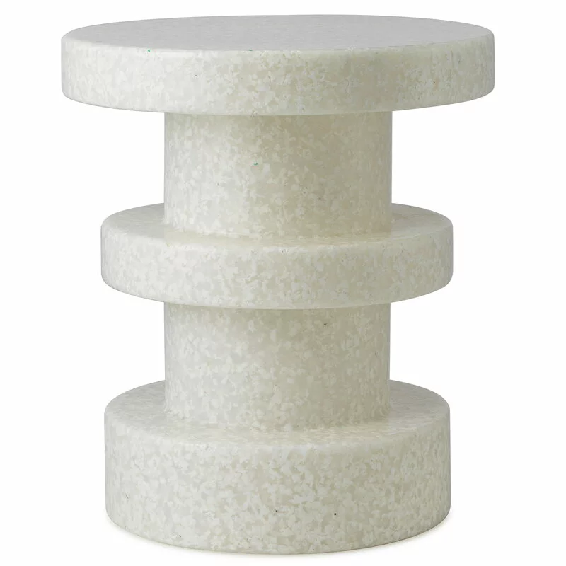 Lo sgabello Bit di Normann Copenaghen è un mobile multiuso deliziosamente originale che funge da sedia, tavolino e supporto per fiori e piante. Disegnato da Simon Legald, lo sgabello è realizzato in plastica riciclata, e la sua forma monolitica è ravvivata da una superficie puntinata che emerge dal materiale: durante il processo di produzione dello sgabello, pezzi di plastica fusa di varie tonalità si depositano su ciascun esemplare in modo leggermente diverso. Quindi, ogni sgabello è anche unico.