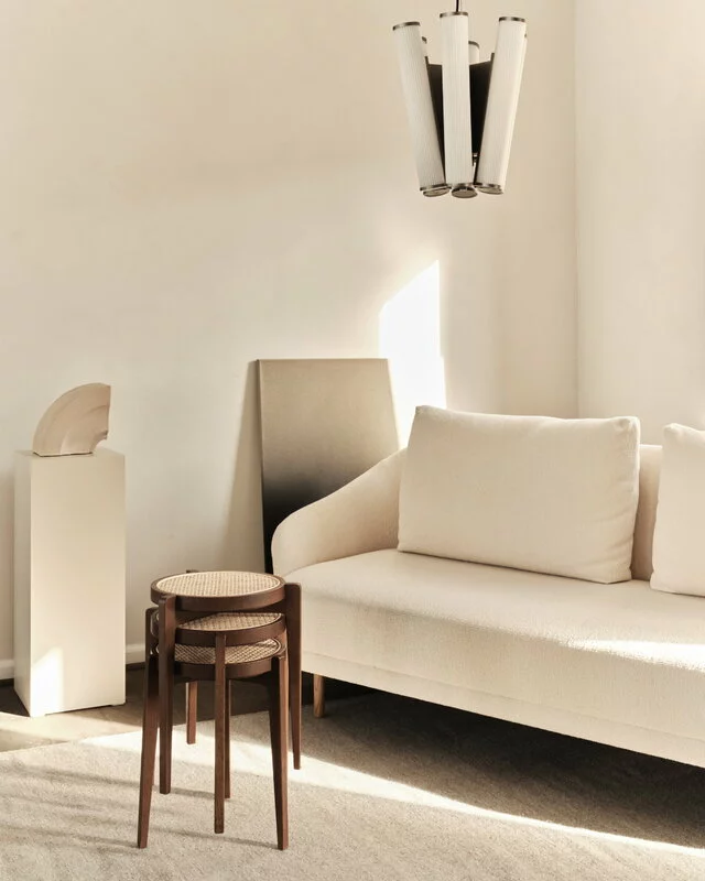 Lo sgabello Le Roi di NORR11 vanta una base elegante a tre gambe e una seduta in classico rattan francese. Le gambe che si restringono sul fondo sono realizzate in rovere massello e la seduta è intrecciata a mano. Oltre che come seduta, lo sgabello Le Roi può essere usato come piccolo tavolino ad esempio accanto al divano, al letto o alla finestra e, se impilati, gli sgabello creano un bel motivo a spirale. Lanciata nel 2018, la collezione Le Roi è stata disegnata da Kristian Sofus Hansen e Tommy Hyldahl.