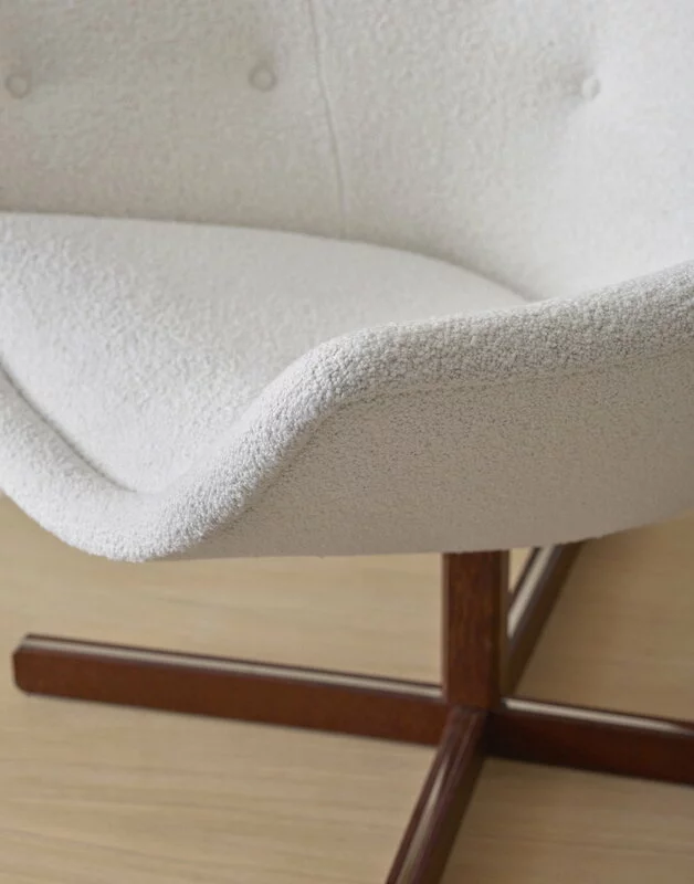 Mandariini di Ornäs è un’elegante sedia disegnata da Carl-Gustaf Hiort af Ornäs nel 1960. La caratteristica principale della Mandariini sono le sue gambe girevoli dritte in acciaio, unite a una seduta ricurva dal look quasi futuristico. La seduta a conchiglia rivestita di tessuto non è solo di grande appeal estetico, ma è anche estremamente comoda. Praticità, resistenza e bellezza resero la sedia Mandariini famosa nel 1960, che venne venduta per case, banche, hotel e navi. Oggi, la sedia è stata rimessa in produzione per gli amanti del design ed è pronta a splendere di nuovo in spazi pubblici e abitazioni private! Come altri pezzi di arredamento Ornäs , la sedia Mandariini è realizzata a mano in Finlandia.