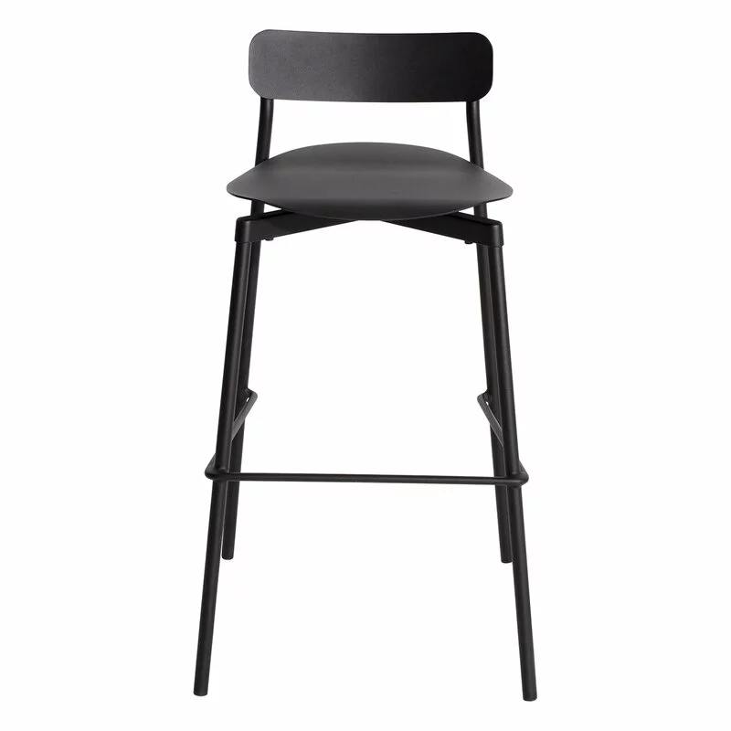 Lo sgabello da bar Fromme di Petite Friture vanta forme semplici e affusolate e una seduta leggermente curvata con ammortizzatori integrati per una comodità di seduta il più possibile soffice e flessibile. Realizzato in alluminio verniciato opaco, lo sgabello da bar Fromme è stato progettato sia per gli ambienti interni che esterni ed è idoneo sia come sgabello per il tavolino da bar sulla terrazza che per la penisola in cucina in casa.