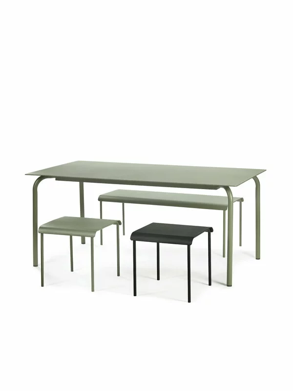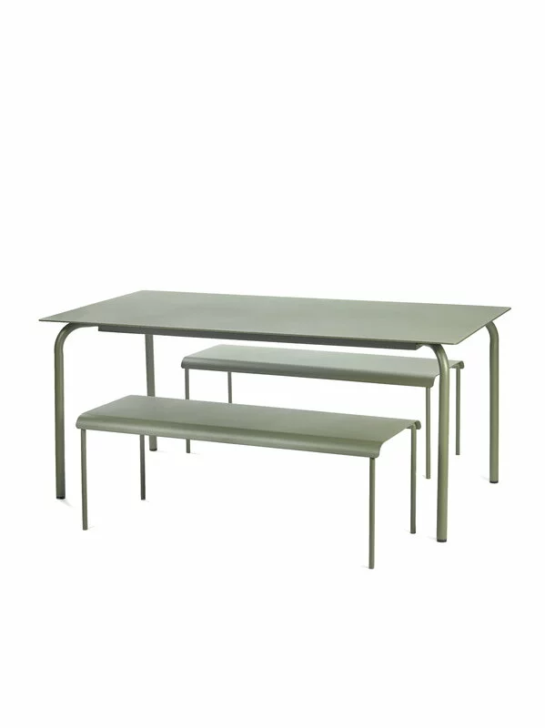 La panca August di Serax è realizzata in alluminio verniciato a polvere ed è adatta sia per ambienti interni che esterni. La panca in metallo è perfetta sia fuori in giardino o nel patio che per il tavolo da pranzo all’interno.