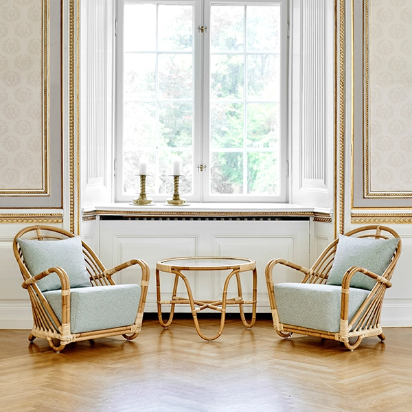 La bella sedia Charlottenborg di Sika-Design è stata disegnata da Arne Jacobsen nel 1936. La sedia è realizzata in rattan Manau & Tohiti ed ha un comodo cuscino foderato. La sedia e il tavolo Charlottenborg fanno parte della collezione Icons di Sika-Design che comprende classici in rattan dei designer più di talento del 20mo secolo.