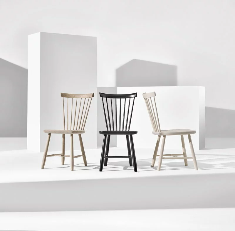 La sedia Lilla Åland di Stolab è un classico svedese progettato da Carl Malmsten nel 1942. Malmsten elaborò il design della sedia dopo la sua visita alla chiesa di Finström, alle isole Åland, situate tra Svezia e Finlandia: si ispirò a una pila di sedie con schienale a doghe verticali che vide nella chiesa e decise di crearne una sua versione. Il risultato finale è una sedia moderna in stile Windsor, chiamata Lilla Åland in omaggio all’ispirazione originale. Questa sedia da pranzo in legno è prodotta nello stabilimento di Stolab a Smålandsstenar, in Svezia, ed è disponibile in diversi colori e finiture.
