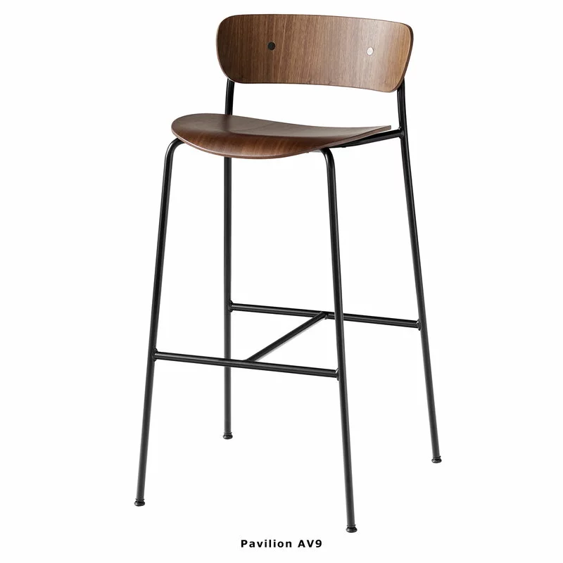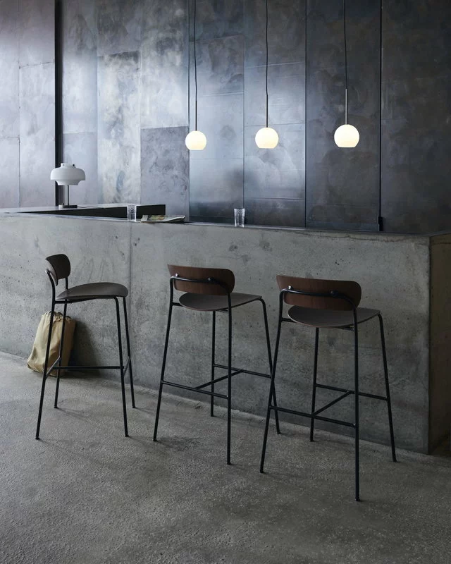 Gli sgabelli da bar Pavilion di &Tradition mettono insieme un’elegante seduta in impiallacciato curvato e una struttura in tubolare sottile. Gli sgabelli da bar Pavilion creano un ambiente armonico attorno a numerosi tipi di tavoli da bar o penisole in cucina.