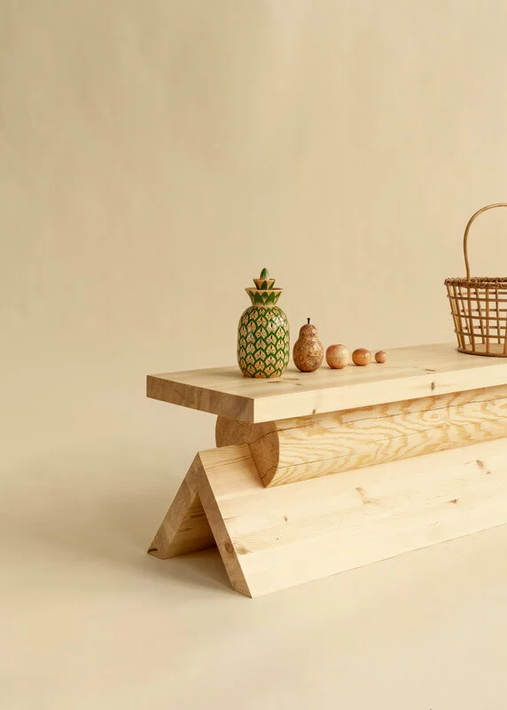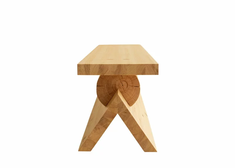 La panca AA di Vaarnii, progettata da Kwangho Lee, è composta da tre elementi apparentemente semplici, impilati l’uno sull’altro: un’asse che funge da seduta, gambe inclinate che formano una V rovesciata e un intero tronco al centro. Unire questi tre elementi non è un compito semplice e, anzi, richiede falegnami con molta abilità e competenze. Realizzato in legno di pino finlandese, il design di questo oggetto acquisterà sempre più fascino nel tempo, poiché gli oli naturali e le resine del legno reagiranno ai raggi UV e trasformeranno lentamente il colore della panca in una deliziosa tonalità miele.