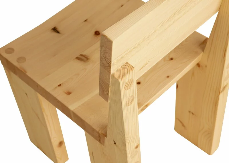 Oltre al design brutale tipico di Paulsen, c’è un altro elemento preferito da Paulsen che è fortemente presente nella sedia: il legno di pino. Secondo il designer, i nodi naturali e la venatura del pino formano motivi davvero psichedelici che appaiono al meglio su grandi superfici. Inoltre il legno di pino invecchia in maniera bella grazie agli oli e alle resine che si presentano in maniera naturale nel legno, diventando di un color miele con l’esposizione ai raggi UV.