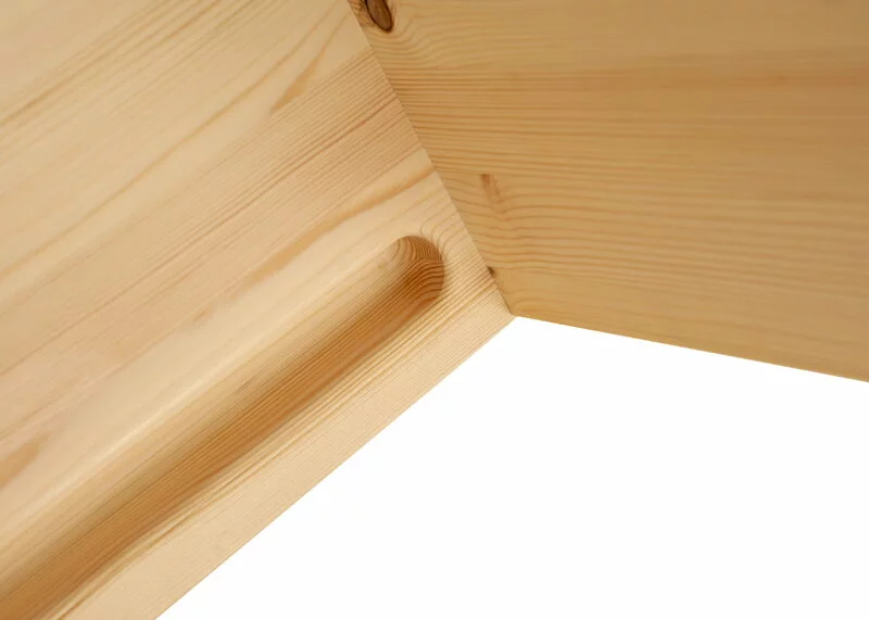 La sedia in legno di pino di Vaarnii potrebbe sembrare rigida e angolare, ma grazie alla seduta curvata è in realtà sorprendentemente comoda. Le dimensioni della sedia, disegnata da Fredrik Paulsen, sono contenute in relazione alle sue forme robuste. Come dettaglio pratico c’è un incavo sotto alla seduta che vi permette di spostare la sedia in maniera più semplice.