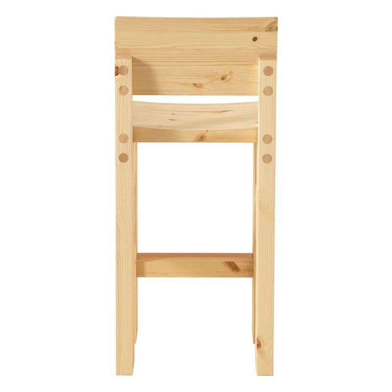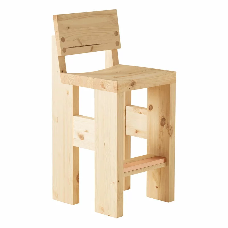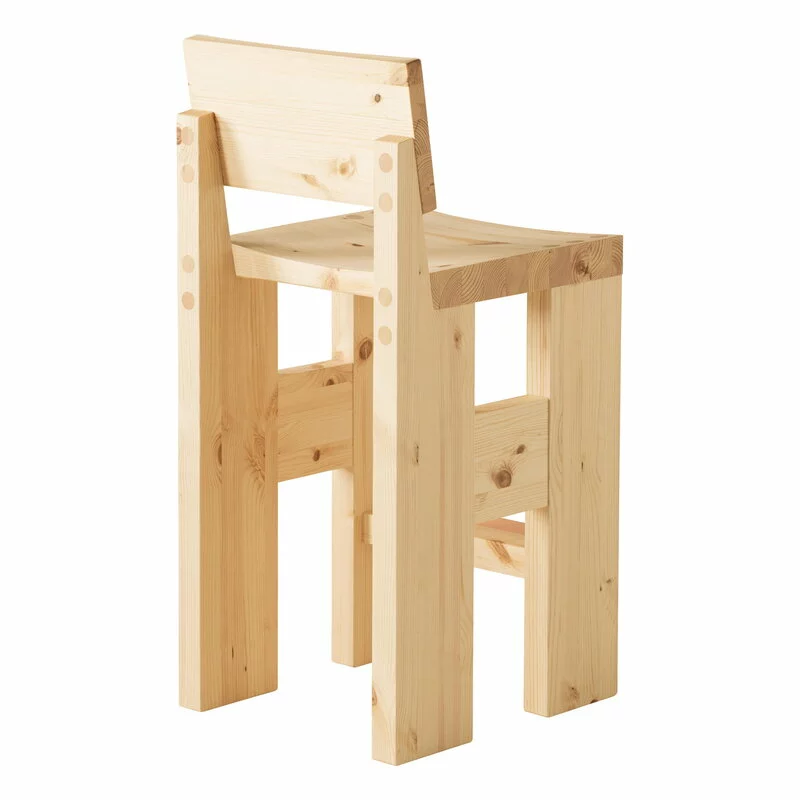 Oltre al design brutale tipico di Paulsen, c’è un altro elemento preferito da Paulsen che è fortemente presente nello sgabello da bar: il legno di pino. Secondo il designer, i nodi naturali e la venatura del pino formano motivi davvero psichedelici che appaiono al meglio su grandi superfici. Inoltre il legno di pino invecchia in maniera bella grazie agli oli e alle resine che si presentano in maniera naturale nel legno, diventando di un color miele con l’esposizione ai raggi UV.