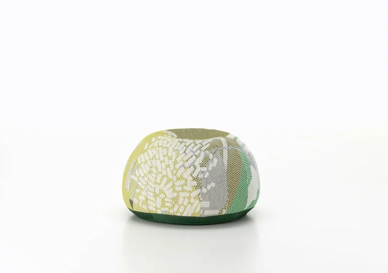 Il poggiapiedi Bovist di Vitra è impreziosito da accattivanti motivi tessuti e texture esclusive opera di Hella Jongerius, designer tessile olandese e direttrice artistica dei colori e materiali presso Vitra. Esperta di tecniche moderne di tessitura e design dei colori, Jongerius ha disegnato il motivo tessuto astratto del poggiapiedi Bovist usando vari colori e complessi tessuti jacquard.