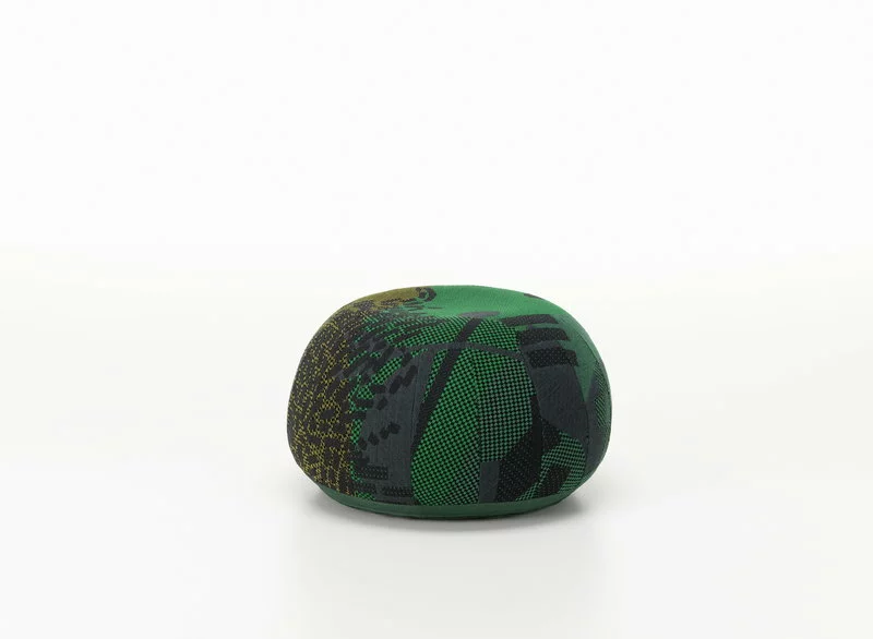 Il poggiapiedi Bovist di Vitra è impreziosito da accattivanti motivi tessuti e texture esclusive opera di Hella Jongerius, designer tessile olandese e direttrice artistica dei colori e materiali presso Vitra. Esperta di tecniche moderne di tessitura e design dei colori, Jongerius ha disegnato il motivo tessuto astratto del poggiapiedi Bovist usando vari colori e complessi tessuti jacquard.