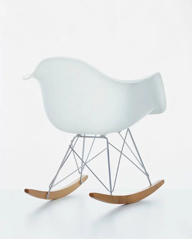 La sedia a dondolo Eames RAR di Vitra unisce in maniera affascinante una seduta in plastica, una struttura in metallo e gambe in legno. Il nome RAR deriva dalle parole Rocking Armchair Rod Base.