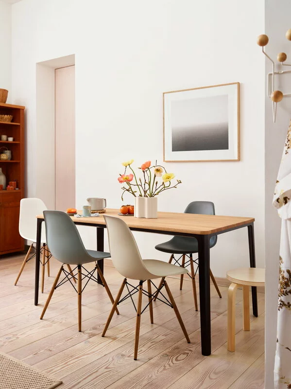 Le sedie in plastica create da Charles e Ray Eames negli anni ’50 sono icone del design, amate per la loro ergonomicità, il carattere senza tempo e le diverse opzioni per quanto riguarda le gambe. Il modello originale con seduta in fibra di vetro fu la prima sedia in plastica prodotta in maniera industriale – oggi la seduta della sedia Eames è realizzata in polipropilene.