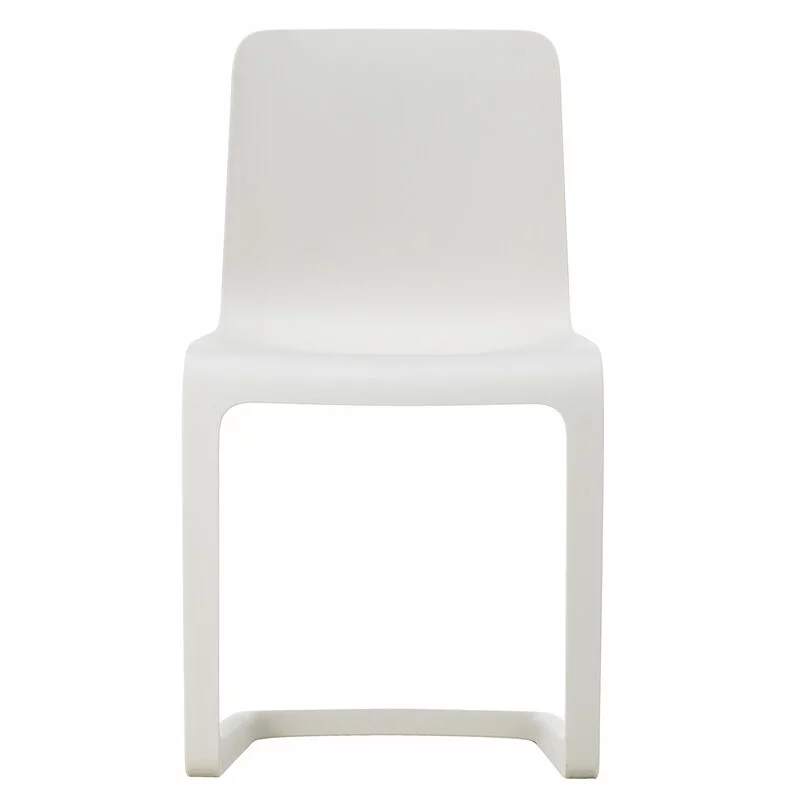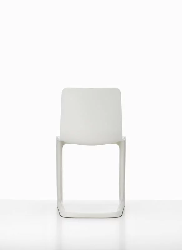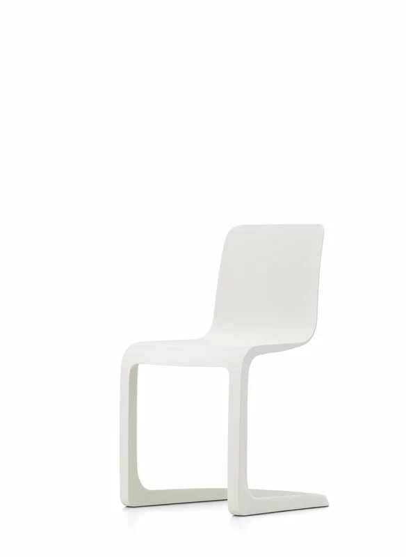 La EVO-C di Vitra è una sedia in plastica progettata da Jasper Morrison nel 2020 e le sue linee eleganti rappresentano il design fuori dall’ordinario tipico di Morrison, privo di tutti i dettagli non necessari. La sedia è una nuova interpretazione della classica sedia cantilever: unisce alla perfezione la struttura della gamba a forma di L, tipica delle sedie con telaio in metallo, con una seduta ergonomica che si flette comodamente quando ci si siede. EVO-C è costituita da un unico materiale, il polipropilene, ed è quindi riciclabile al 100%.
